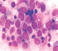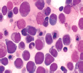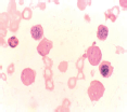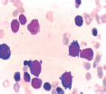 Figure 4. Erythroblasts demonstrating coarse granules on PAS staining.