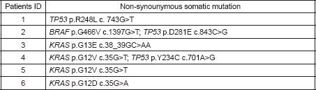 Table 3. Non-synonymous somatic mutations identified in the six lung adenocarcinoma.