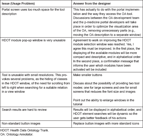 Several external users tested the Ontology Annotator. In the following table, we report the issues encountered by one of them during the test: