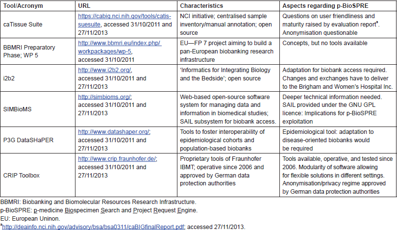 Table 1. ICT tools for integrated biobanking (overview; see [6] for further details).