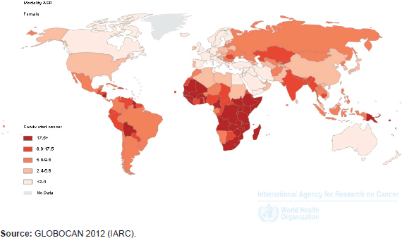 Figure 1. Cervical cancer around the world. Estimated mortality rates.