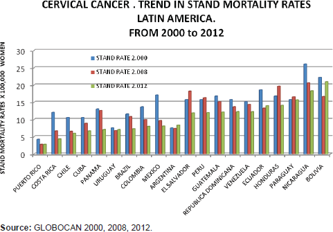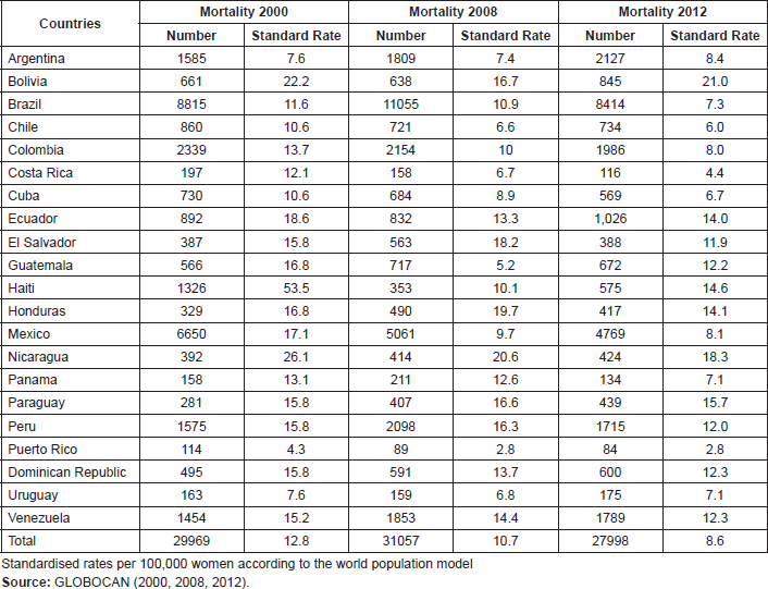 Table 2. Mortality due to cervical cancer Latin America (2000, 2008, 2012).