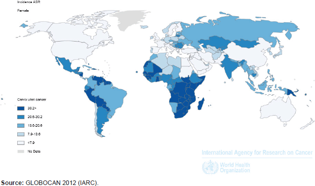 Figure 2. Cervical cancer around the world. Estimated incidence rates.