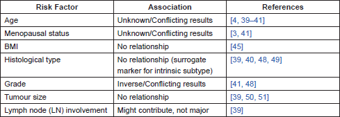 Of note, there is an irrefutable association between menopausal status and age that has to be taken into account when interpreting these studies.