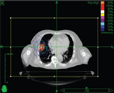 Figure 3. Axial view of a stereotactic treatment plan delivered with CyberKnife for an early stage non-small cell lung carcinoma.