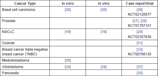 The evidence presented above, (and summarised in Table 1), suggests that ITZ has a number of anti-cancer effects at clinically achievable doses, particularly in NSCLC, BCC, and prostate cancer. There is evidence that that it may also be applicable to a number of other cancers, including glioblastoma, breast, pancreatic, and ovarian. More generally, the main mechanisms of action investigated to date, antiangiogenic and Hedgehog inhibition, may serve to identify other cancer types where investigation with ITZ may be beneficial.
