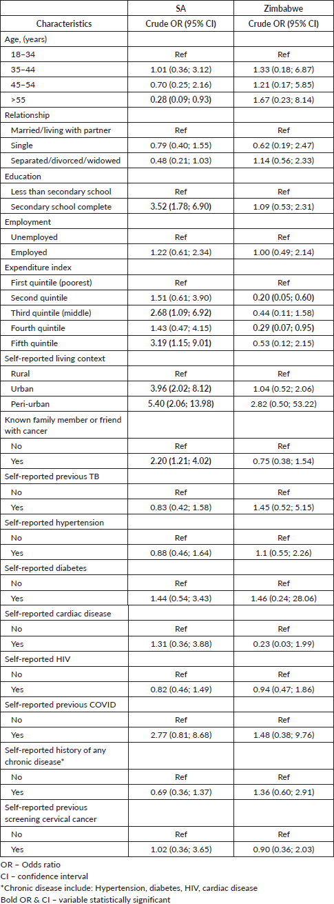 Table 3. Factors associated with cervical cancer symptom awareness in each country.