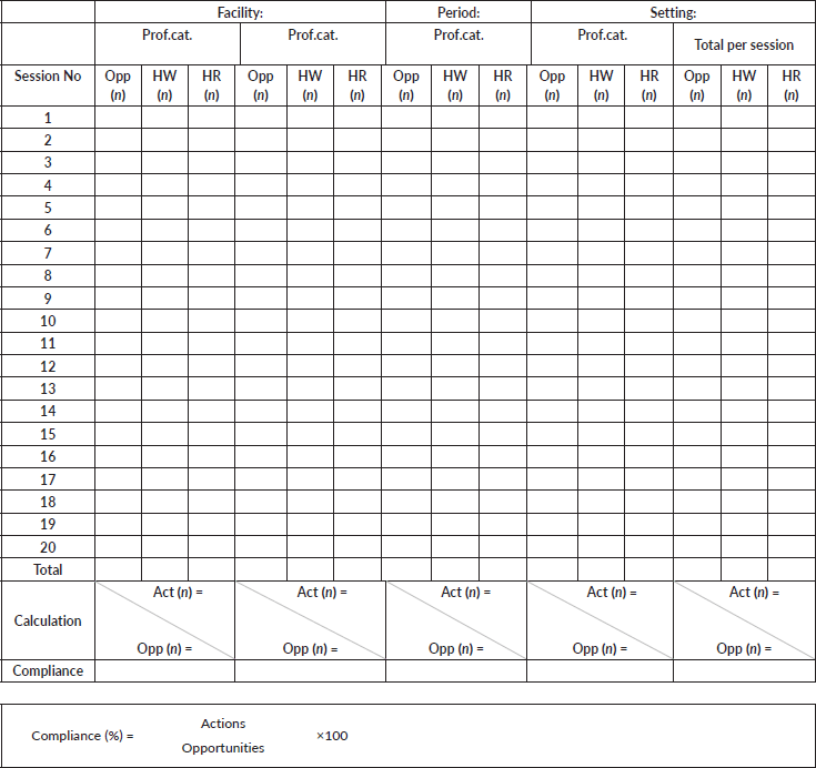 Observation Form – Optional Calculation Form (Indication-related compliance with hand hygiene)