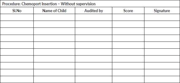 Annexure 5. Chemoport insertion hands-on training log sheet.