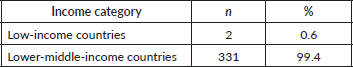 Table 1. Trial distribution by income category. Number and proportion of breast cancer clinical trials conducted in low-income and lower-middle-income countries between 2010 and 2020.