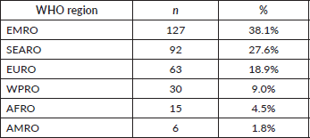When grouped by WHO region, most trials were conducted in the Eastern Mediterranean (38.1%) and South-East Asia (27.6%) regions, with relatively few studies from Africa (4.5%) and the Americas (1.8%) (Table 2).