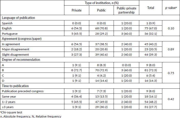 Table 2. Comparison between the type of institution and characteristics of the publication.