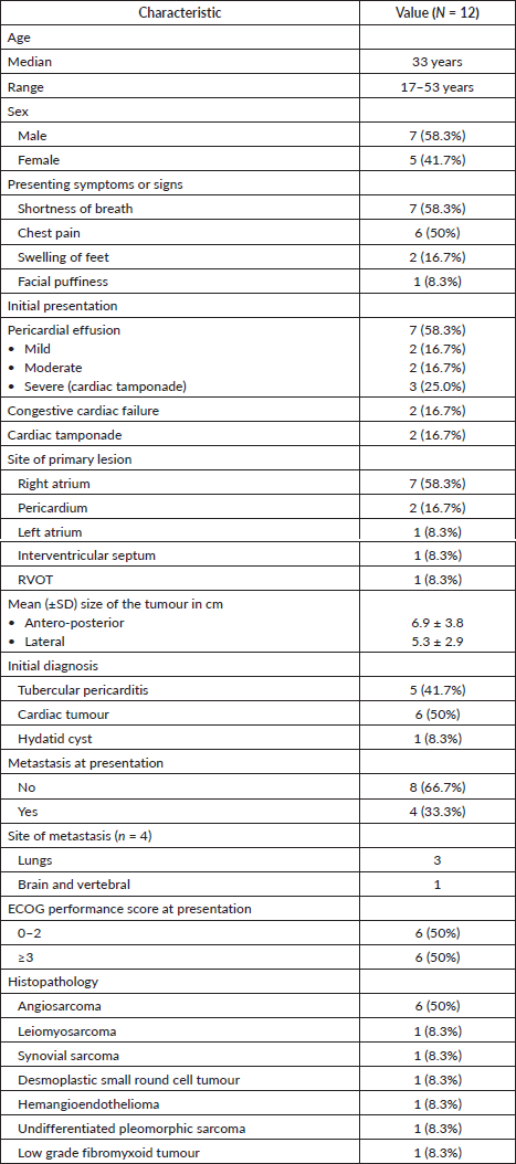 Conclusion: This study highlights the advanced presentation and poor outcomes in patients with cardiac sarcoma. Due to the rarity of the tumour, it is often misdiagnosed. Systemic chemotherapy could alleviate symptoms and prolong survival. However, sarcoma pathology is heterogenous and cannot be generalised.