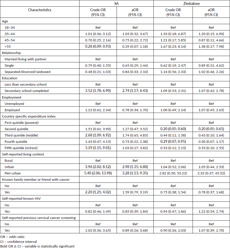 Table 5. Factors associated with cervical cancer risk factor awareness in each country.