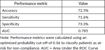 Table 7. Predictive performance of the final model for radiotherapy non-compliance.