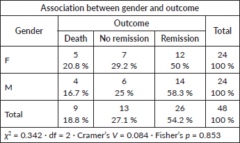 Gender versus outcome