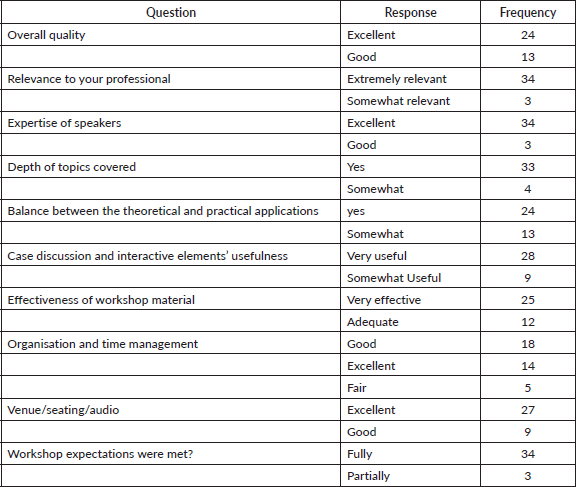 Table 1. Feedback from participants for the workshop conducted on day 1.