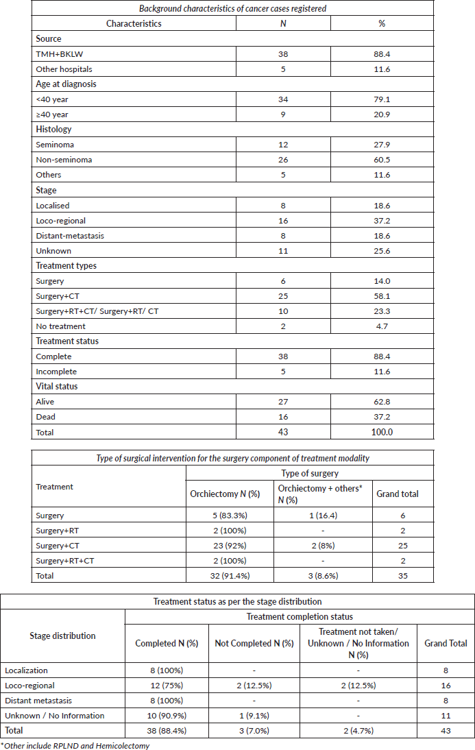 Table 1. Characteristics of testicular cancers registered at the Ratnagiri PBCR (2009–2018).