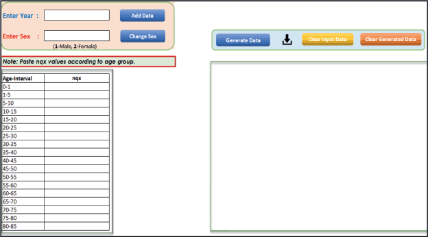 PopMortGen-India was developed to automate the conversion of abridged life table data into PopMort file format for use in statistical software packages such as STATA, R and SAS. The tool was developed utilising Microsoft Excel, employing essential functions, structured worksheets, automation through formulaic logic and macros to enhance functionality.