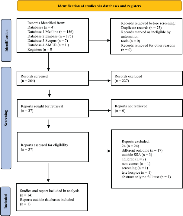Search terms: cancer, care pathway(s), hospital(s), PC, Sub-Sahara Africa.