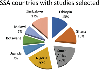 Methodology for the literature search was advised by the librarian and to ensure SSA coverage. The librarian assisted in identifying the countries under SSA and how to undertake the literature search. MeSH and non-MESH terms that were synonymous with the search word were linked in the search with OR, then after independent searches were done AND was used to link the searches.