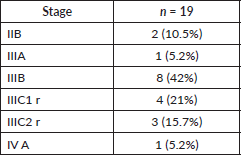 Table 5. Stage-wise distribution of patients treated with definitive CCRT (n = 19).