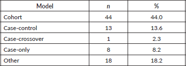 Table 4. Observational models. Distribution of observational study designs among included breast cancer clinical trials.