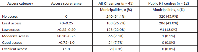 Table 1. Summary of spatial accessibility scores of municipalities in Luzon to RT centres within 120 minutes, by facility type
