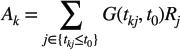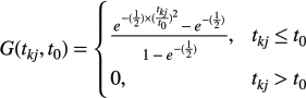 Step 2: Accessibility score. For each municipal population centroid (k), the spatial accessibility score (Ak) is calculated by summing the ratios (Rj​) of all RT centres within its 120-minute travel-time threshold (t0). These ratios are also weighted by the same Gaussian distance-decay function G(tkj, t0) to reflect the diminishing likelihood that patients travelling to more distant RT facilities. The accessibility score is expressed as follows: