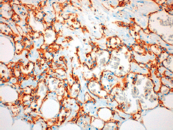 Figure 3. 20x amplification of the definitive anatomopathological study of our case where the positivity of CD31 is observed.
