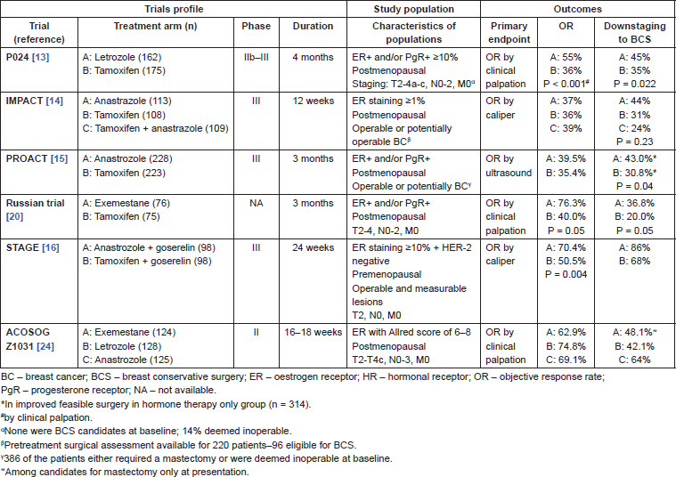 Table 1. Randomised clinical trials comparing different endocrine agents in the neoadjuvant setting.