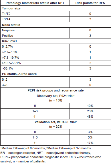 Table 3. The preoperative endocrine prognostic index (PEPI) score and validation studies.