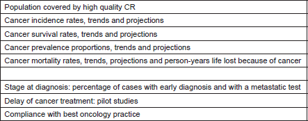 Cancer registries (CR) are the fundamental source of objective cancer data, and thus are indispensable for the evaluation of the cancer burden and for design of effective cancer control plans. Their potential roles spread far beyond epidemiological research, from the exploration of the causes of cancer to health economics, from the evaluation of mass screening programmes to monitoring the quality and outcomes of health services, from addressing the inequalities in access to healthcare, to patients’ quality of life analyses, from treatment safety to the development of biomarkers.