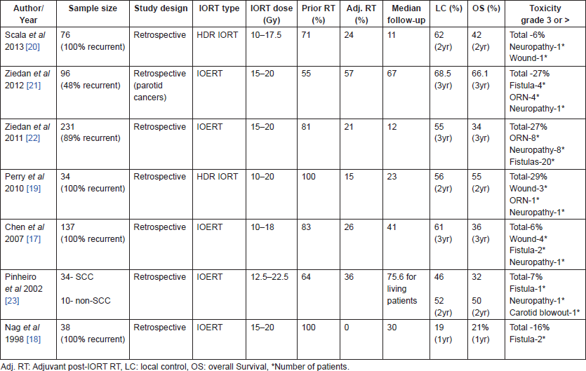 Table 1. Studies of IORT in recurrent head and neck cancer after gross total resection.