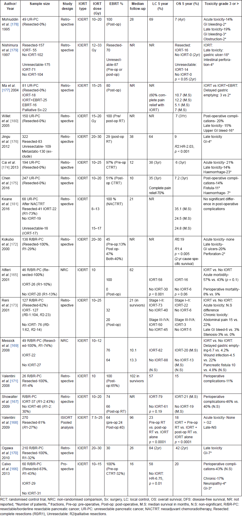 177. Ma HB, Di ZL, and Wang XJ, et al (2004) Effect of intraoperative radiotherapy combined with external beam radiotherapy following internal drainage for advanced pancreatic carcinoma World J Gastroenterol 10(11) 1669–771 https://doi.org/10.3748/wjg.v10.i11.1669 PMID: 15162548 PMCID: 4572777