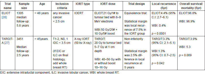 Table 2. Randomised control trials of IORT versus WBI in early-breast cancer.