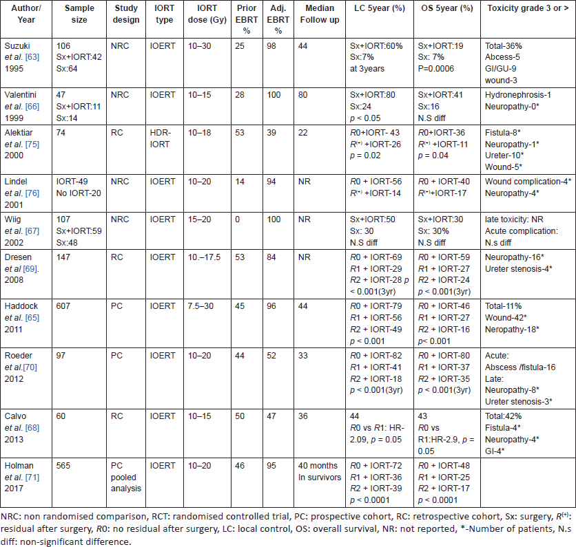 Table 6. Studies of IORT in Retroperitoneal sarcoma.