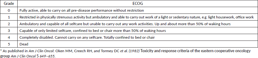 5. Sorensen JB, Klee M, and Palshof T, et al (1993) Performance status assessment in cancer patients: An inter-observer variability study Br J Cancer 67(4) 773–775 https://doi.org/10.1038/bjc.1993.140 PMID: 8471434 PMCID: 1968363