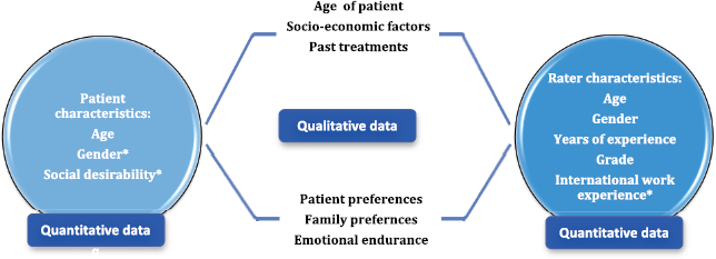The quantitative data looked into rater characteristics, such as age of the clinician, gender of the clinician, number of years of experience in oncology, grade of work and international work experience as potential factors that could have had a bearing on the rating pattern and found that only international work experience was shown to have improved agreement between raters. The patient characteristics were studied as well. Being a lady patient in the vignette was associated with poorer rating of PS. On the other hand, being perceived as someone with socially desirable characteristics made them have a better PS score. The qualitative in-depth interviews showed that non-PS factors made a significant impact on treatment-related discussions as well. The clinicians highlighted that ‘age of the patient’, ‘perceived socio-economic status of the patient’, ‘emotional endurance of the patient’ and ‘preferences expressed by the patient and the family’ all influenced decision-making in oncology. In Figure 5, we have juxtaposed the findings from the qualitative arm of our study with the quantitative results.